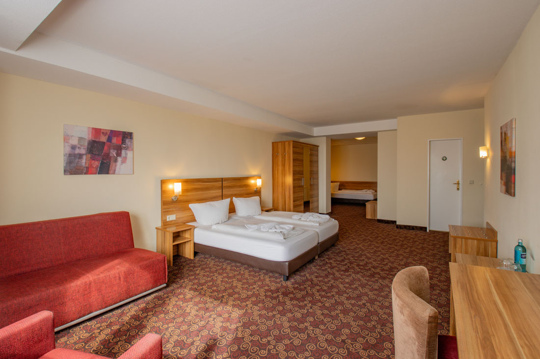 - Komfortable Zimmer aufgeteilt in Einzel-, Doppel- &